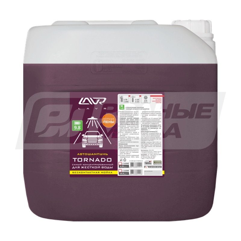 Автошампунь для бесконтактной мойки TORNАDO LAVR – профессиональный высококонцентрированный состав для очистки внешних поверхностей автомобилей, мотоциклов, велосипедов и т.д. Средство с усиленной моющей способностью для жесткой воды. Сохраняет высокие моющие свойства даже при минимальных концентрациях разведения. Формула безопасна для поверхностей кузова.